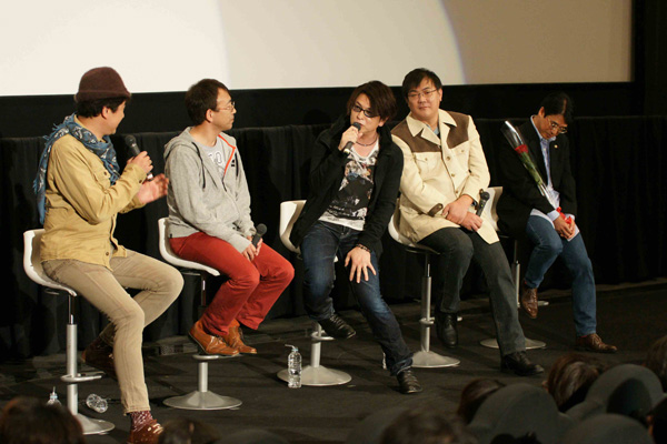 冒頭で行われたトークイベントでは、福田己津央(監督)/金丸淳一(風見ハヤト役)/関俊彦(ブリード加賀)/緑川光(新条直輝役)の4名が登壇。一言挨拶をいただくことに。