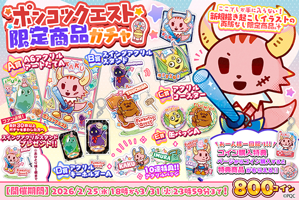 ポンコツクエストの新規描き起こしイラスト商品がゲットできるオンラインガチャ