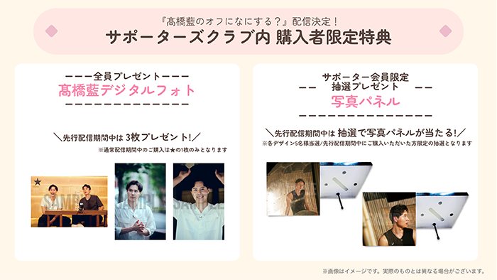 サポーターズクラブサイトより配信をお買い求めいただいた方に“髙橋藍デジタルフォト”をプレゼントいたします。