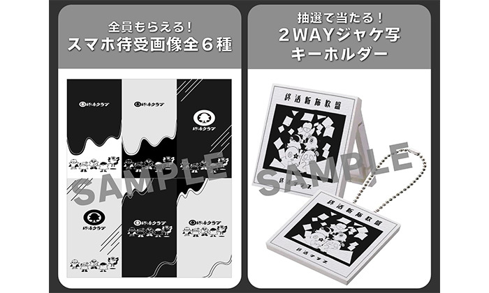 iTunes Store、またはAmazon Music DLで終活クラブ『終活新布教盤』をPre-order(予約購入)いただき、ご応募いただいた皆様にもれなく【オリジナルスマホ待受画像(計6種)】を、さらにその中から抽選で10名様に【2WAYジャケ写キーホルダー】をプレゼント!